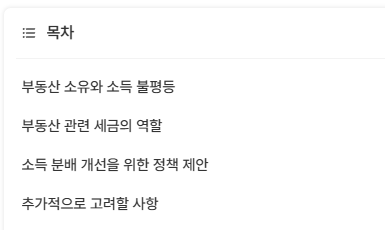 이러한 정책들을 통해 부동산으로 인한 소득 불평등을 완화하고, 사회 구성원 간의 경제적 격차를 줄여 보다 공정하고 안정적인 사회를 구축할 수 있을 것이다.