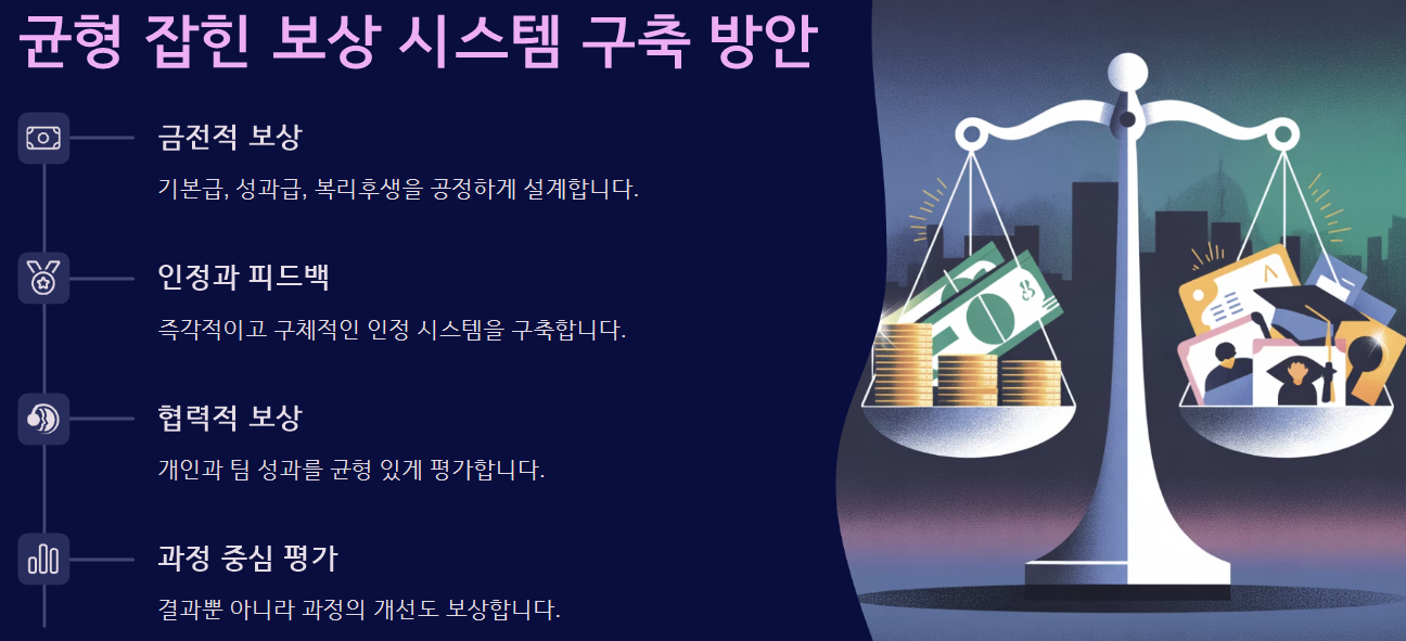 - KPI 외에도 자기 개발, 조직 기여도, 협업 평가를 반영한 보상 체계가 필요합니다.