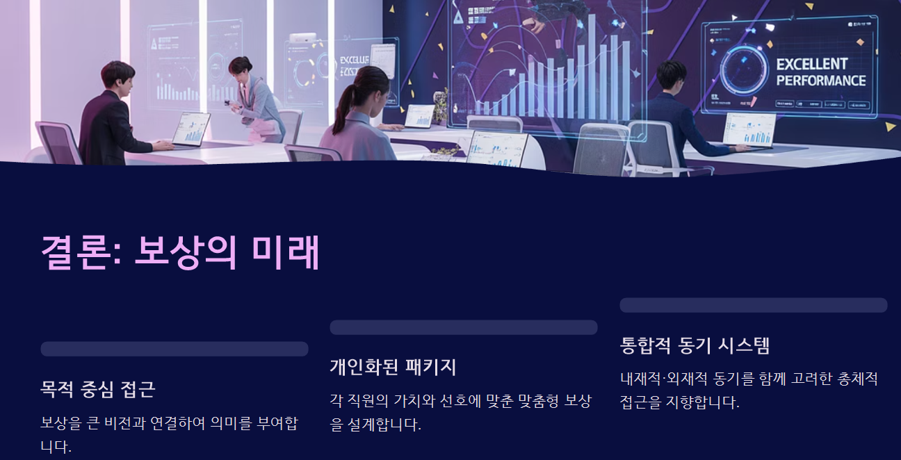 지금 “왜 아무리 보상을 해도 사람들이 움직이지 않을까?”라고 고민 중이라면, 보상 자체를 다시 설계하기보다 사람의 감정, 자율성, 가치 인식을 바꾸는 환경 조성부터 고민해보는 것이 정답입니다.