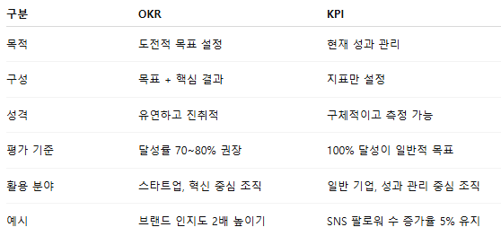 🔁 실제로 많은 조직이 OKR과 KPI를 함께 운영합니다.